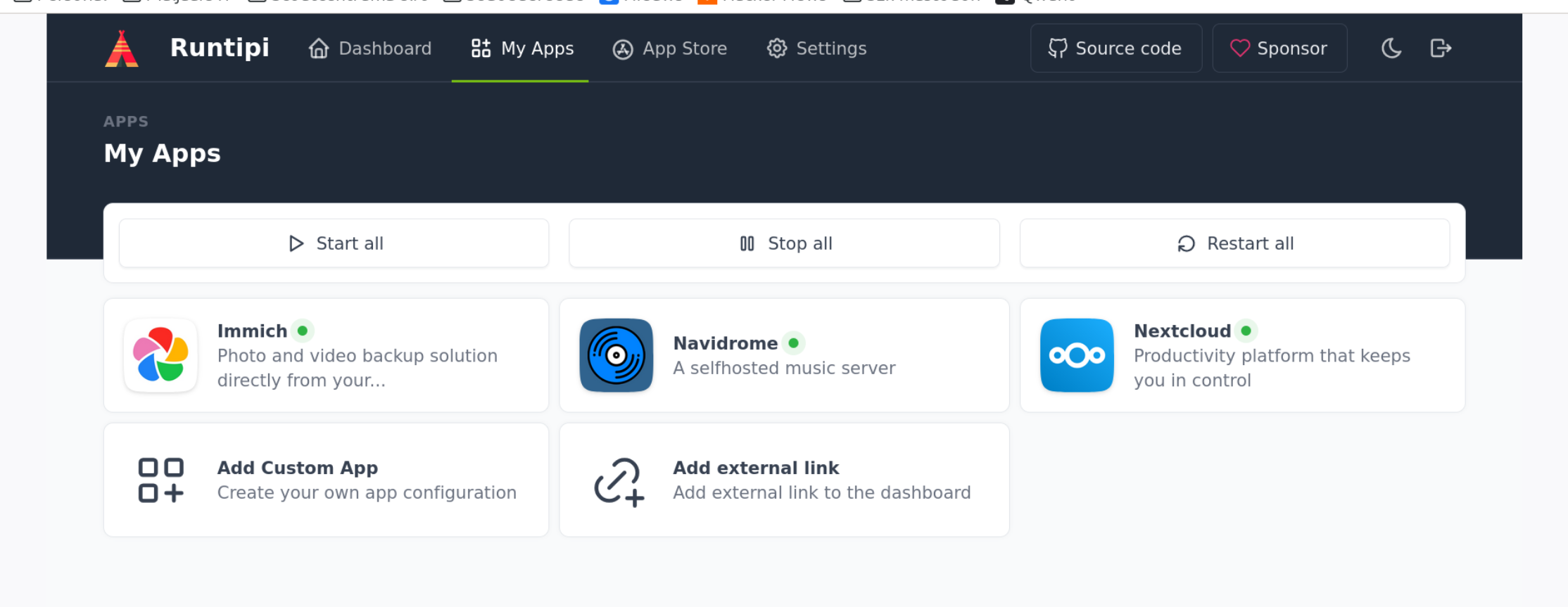 Ik heb er nu Immich, Nextcloud en Navidrome mee draaien. Ik heb de apps na de eerste installatie nog wel een keer moeten 'resetten' via de Runtipi webinterface, maar verder werkte het vrij goed.